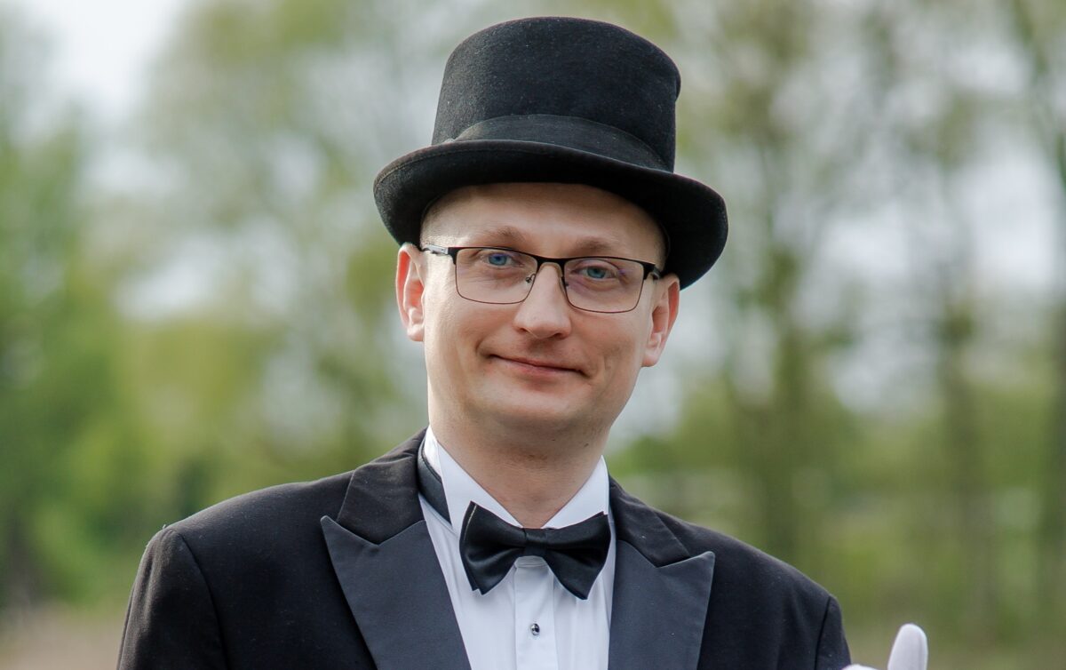 Zawsze na straży dobrej zabawy. Jego specjalność to wesela międzynarodowe. Uwielbia poznawać nowe kultury i zapoznawać gości z zagranicy z polską tradycją i obyczajami. Lubi zaczerpnąć informacji o parze młodej, żeby kreatywnie je wykorzystać podczas weselnego przyjęcia. Prywatnie ojciec 2 wspaniałych córek. Z domowego babińca czasem chętnie wyrwie się na wesele, na którym z opiekuńczego taty przekształca się w charyzmatycznego szefa imprezy. Jego przygoda z mikrofonem zaczęła się kilkanaście lat temu od komentowania meczów i wydarzeń sportowych. Na jego imprezach słychać charakterystyczny styl sprawozdawcy sportowego, co bardzo przypada do gustu gościom. Ma dobry żart sytuacyjny i celne riposty. Po dobrze poprowadzonej imprezie nie ma dla niego większej nagrody niż uśmiech i zadowolenie wytańczonych gości (no, może poza premią od szefa). Kocha to co robi. Jedynie składanie sprzętu po imprezie i zwijanie kabli doprowadza go do szewskiej pasji. Wielbiciel polskiej klasyki filmowej i dobrej pizzy.